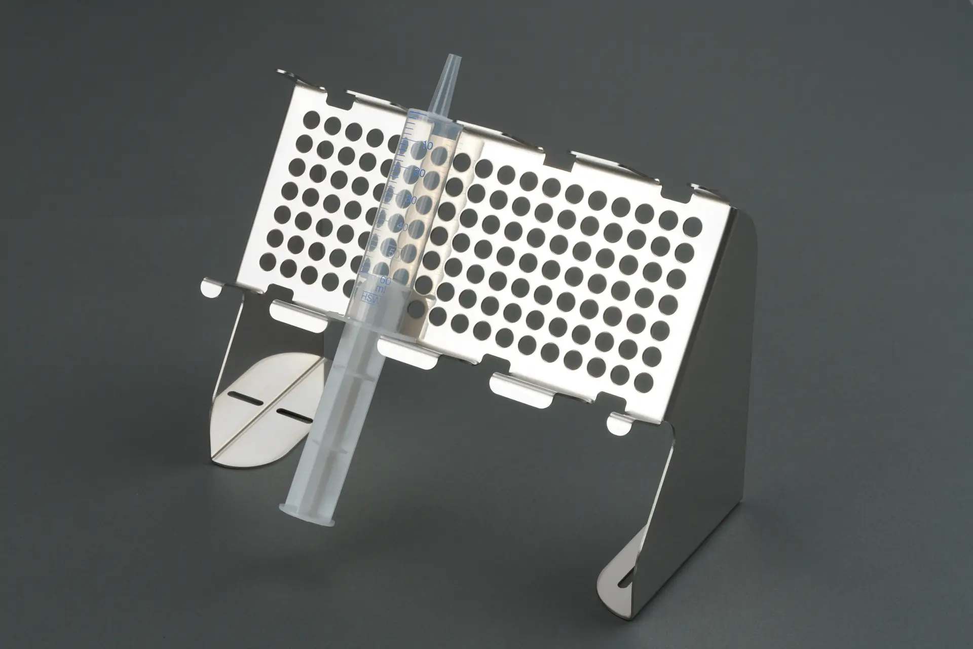 Individuell gefertigte Spritzenhalter für den Einsatz im Reinraum und in industriellen Umgebungen.