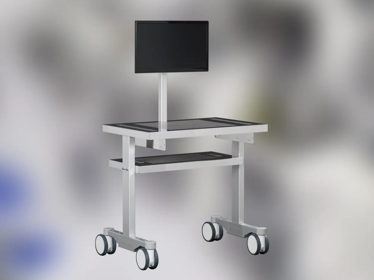 Der mobile Laptopwagen dient als flexibler IT-Arbeitsplatz im Reinraum und kann stufenlos in der Höhe verstellt werden, um sich optimal an unterschiedliche Nutzer, Tätigkeiten und Arbeitssituationen anzupassen. Er ermöglicht ergonomisches Arbeiten im Stehen oder Sitzen und kann dank seiner mobilen Ausführung schnell an wechselnde Einsatzorte gebracht werden – ideal für Dokumentation, Prozesskontrollen oder temporäre IT-Aufgaben direkt im Reinraum.