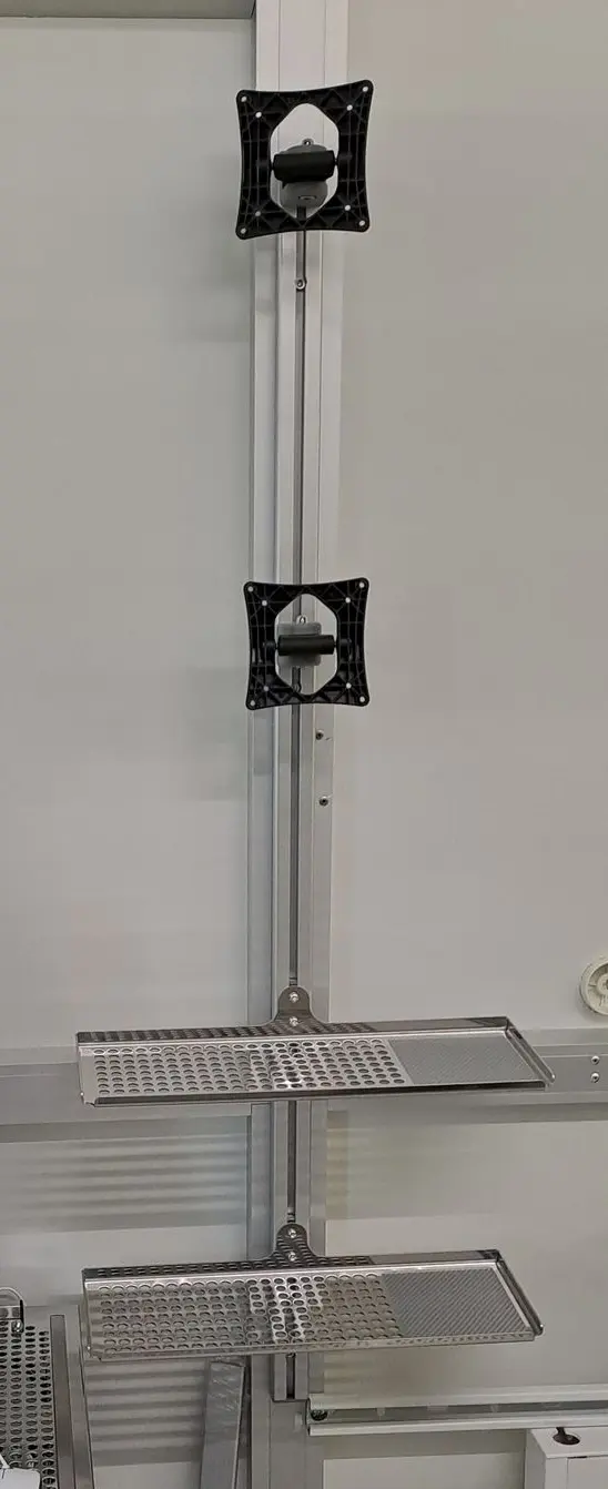 Der Operatorwagen ist eine mobile Arbeitsstation speziell für den Reinraum, die den Arbeitsplatz direkt an der Fertigungsanlage erweitert und damit flexible Prozesse unterstützt. Er dient als vollwertiger Arbeitsplatz mit eingebautem Computer und Bildschirm und ist durch arretierbare Reinraumrollen mobil bewegbar, sodass er unkompliziert zum Einsatzort gebracht werden kann. Gerade in Umgebungen mit wechselnden Tätigkeiten oder Instandhaltungsaufgaben ermöglicht er effizientes Arbeiten direkt dort, wo es gebraucht wird – ohne feste Installation und mit reinraumtauglicher Mobilität.