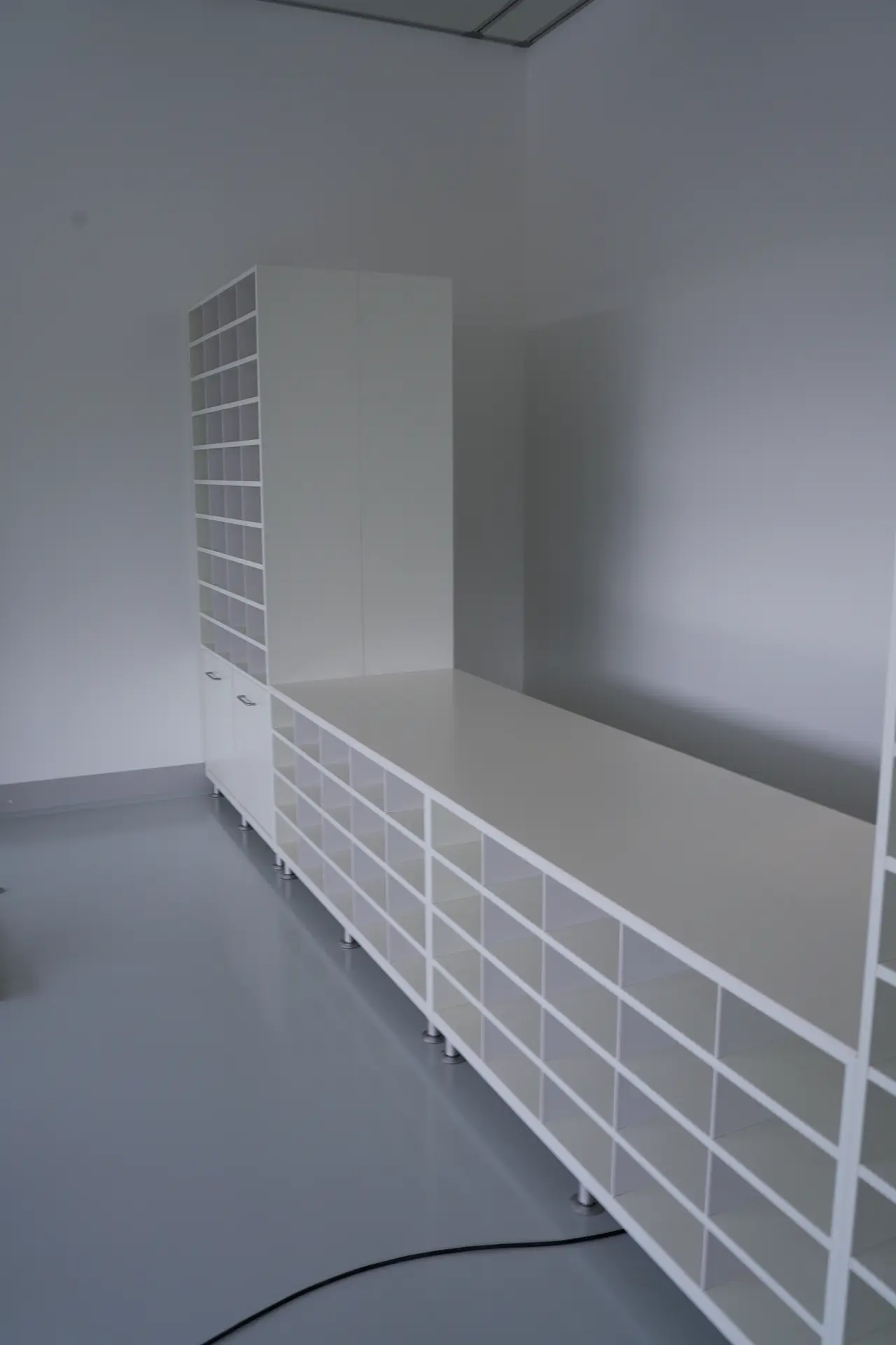 Schuh- und Wäschekästen ermöglichen eine klare Trennung und geordnete Aufbewahrung von Reinraumkleidung. Die Ausführung wird an Anzahl der Nutzer, Platzangebot und Ablaufkonzepte angepasst und unterstützt saubere, nachvollziehbare Prozesse.